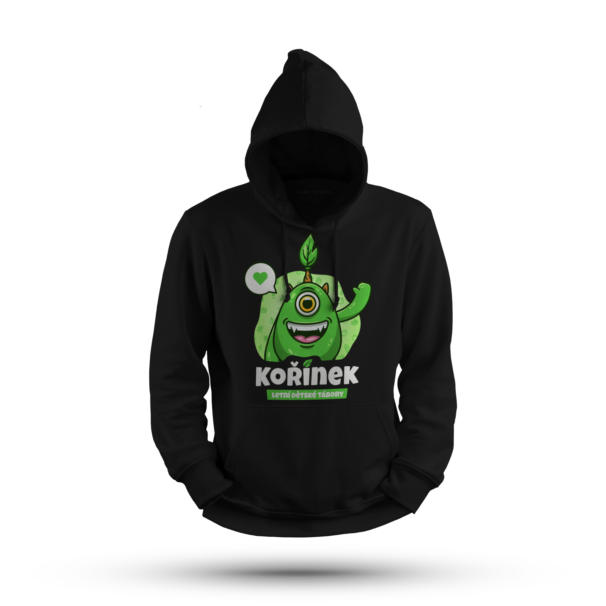 Mikina přes hlavu s motivem našeho táborového maskota Kořínka
